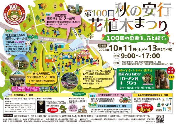 今年で記念すべき第100回を迎える「秋の安行花植木まつり」。新しいポスターが完成しました!