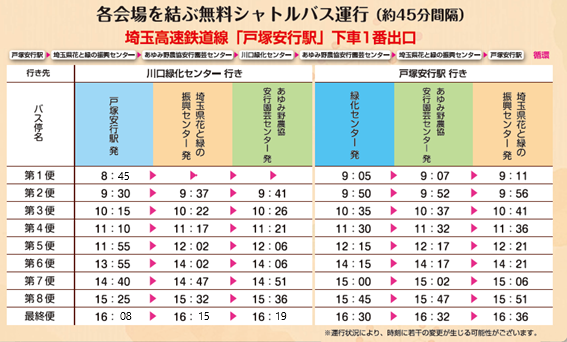 各会場を結ぶ無料のシャトルバスを約45分間隔で運行します。